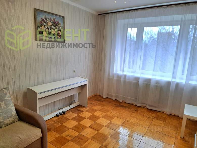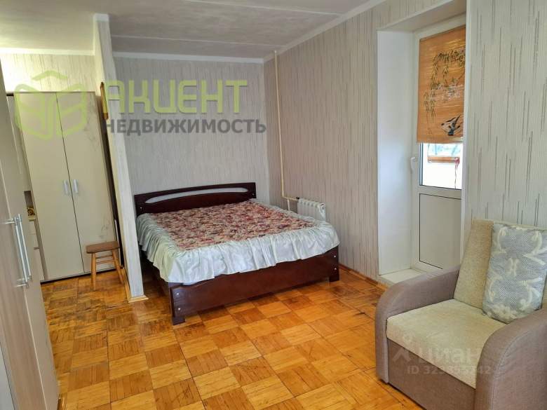 Квартира 35,7 кв. м. расположена на 4 этаже 9-этажного кирпичного дома, во дворе детская площадка, парковочные места. В подъезде светло, есть новый современный лифт. В доме имеется газоснабжение, водопровод с холодной и горячей водой, отопление. В квартире установлены новые пластиковые окна с широкими подоконниками, входная железная дверь, новая электропроводка, новые счетчики, новые батареи, зимой тепло. В квартире есть большая просторная комната 19,4 кв. м. с большим окном и балконом. В комнате новая двуспальная кровать, кресло, новая мебельная секция. Балкон застекленный, в нем имеется комод для хранения вещей и веревки для сушки белья.