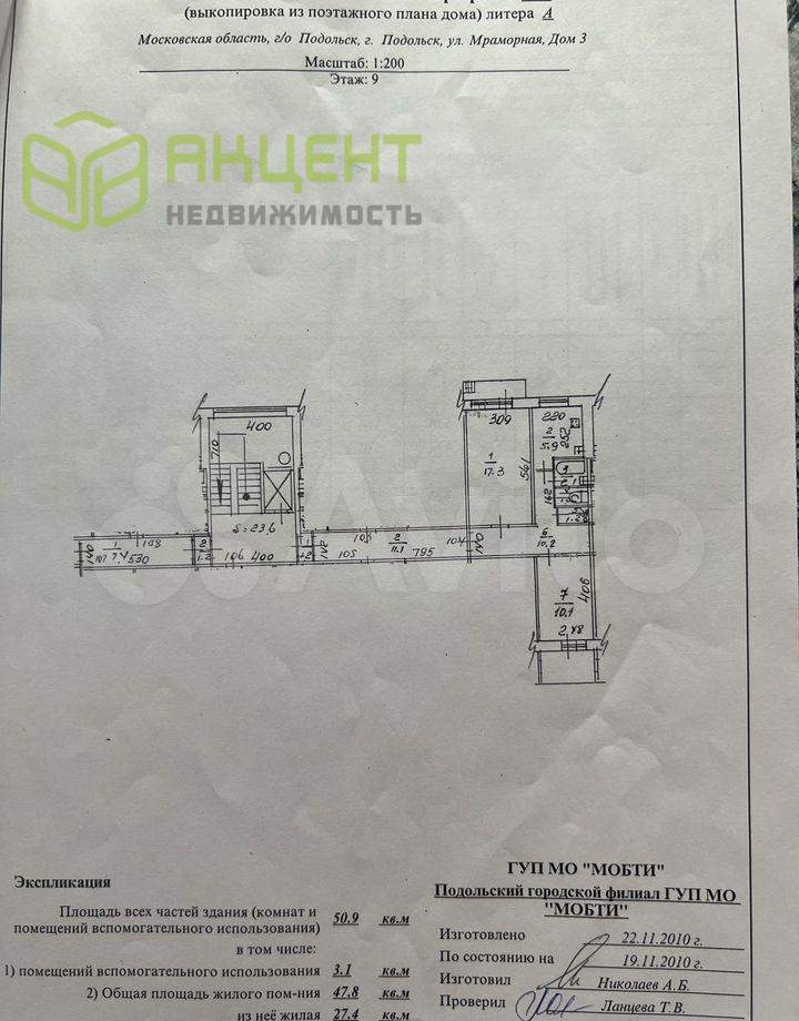 2-к. квартира, 50,8 м², 9/9 эт., Московская область, Подольск, Московская обл., Подольск, Мраморная ул., 3
