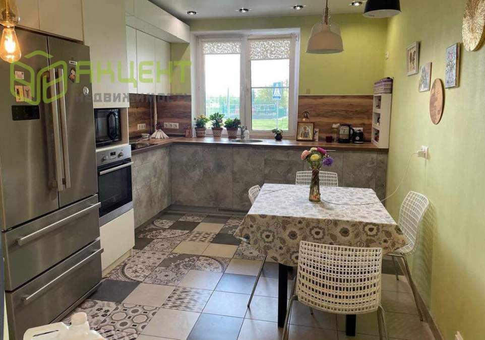 Кухонная зона - мечта хозяйки: встроенная бытовая техника - огромный четырехкамерный холодильник, встроенная духовка, микроволновка, варочная панель, посудомойка. Мечта многих - раковина перед окном на улицу - красота и комфорт!