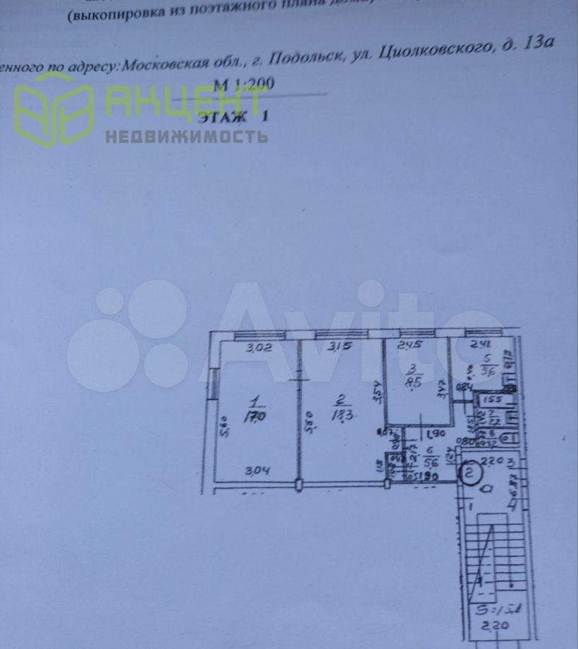 Доля: 3-к. квартира, 58,9 м², 1/5 эт., Московская область, Подольск, Московская обл., Подольск, ул. Циолковского, 13А