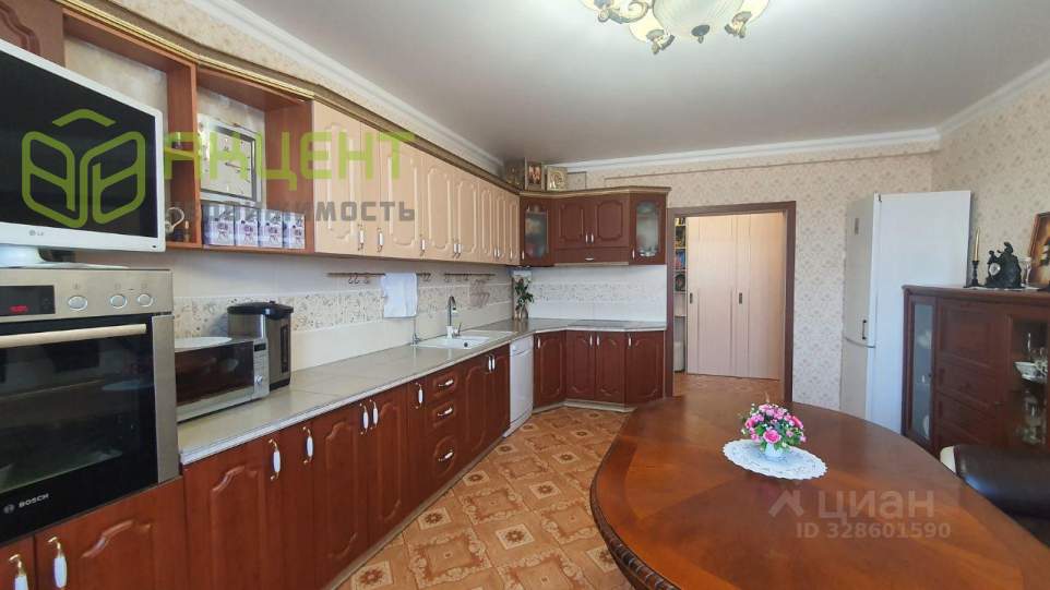 - новым хозяевам остаётся весь кухонный гарнитур, включающий стеклокерамическую инфракрасную варочную поверхность, посудомоечную машину, духовой шкаф, обратноосмотический фильтр для воды с минерализатором и двойным краном;