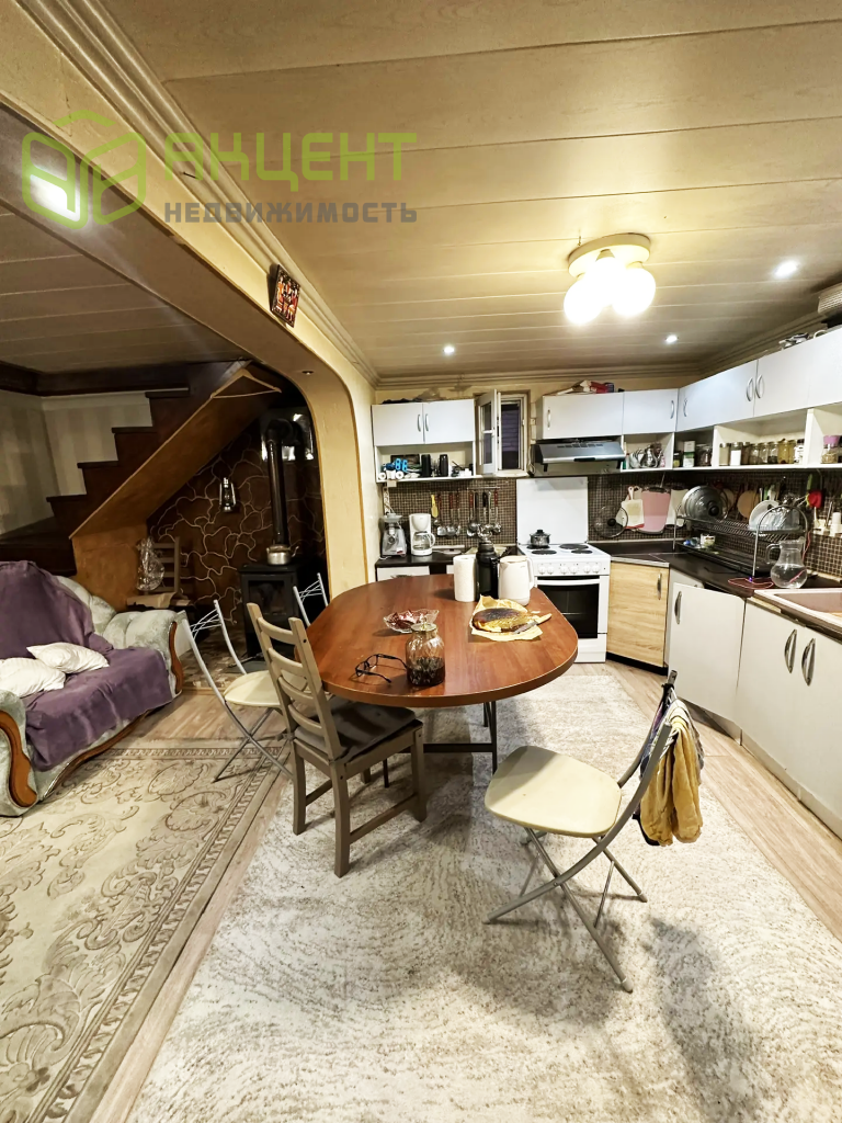 Гостевой дом: 2 этажа, брус, ленточный фундамент, пригоден для круглогодичного проживания. Печное и электрическое отопление (котел) . Кухня-гостиная, санузел, спальня, гардеробная.