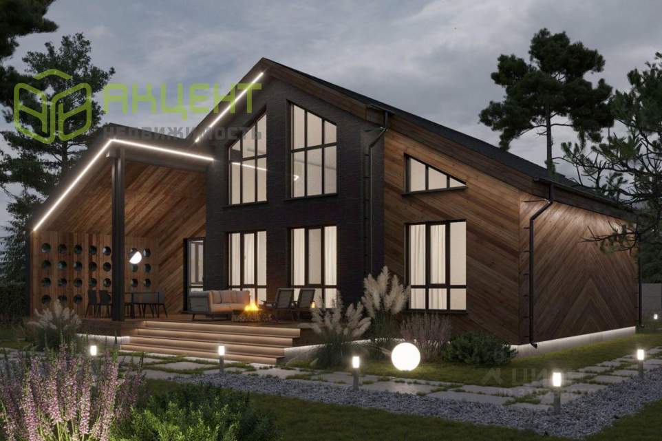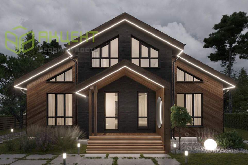 - Уличное освещение комбинированное — фасадные светильники и светодиодная подсветка по периметру.