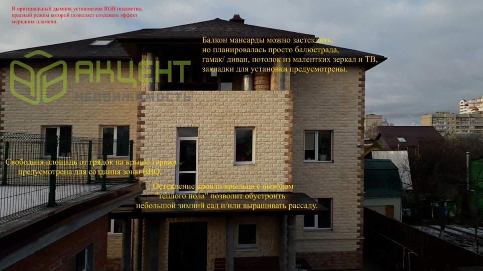 Дом 2004 год сдачи Госкомиссии, реконструировал после приобретения в 2012 под себя. Получился очень теплым. Газ в самый холодный месяц мах. 800 куб.м. По кадастру: дом 370 кв.м., участок 8 соток (без 4 кв.м.), гараж 46 кв.м. -зарегистрирован. Налоги 2020 г.: земля 4100, дом 30500, гараж 360 рублей. Полная городская инфраструктура школы, д/сады (на улице есть частный д/сад), художественная школа рядом, магазины, аптеки, стадионы всех типов, ледовая арена, бассейны. Транспорт - остановка 100 м., автобусы, маршрутки до метро и ж/д станции 1,8 км. Один собственник с 2012 г., прописанных нет. Электричество 380В 15Квт. Магистральный газ. Городской водопровод !!! без счетчика 500/900 руб. в месяц, в зависимости от времени года добавляется за полив, + своя арт. скважина без железа, городская канализация - уличная часть на балансе Водоканала. Стационарный телефон (+7496 Ростелеком). Интернет оптика GPON. Пять кондиционеров (53-х) без пробега. Видеонаблюдение по периметру 13 камер, одна поворотная с зумом на высоте 7 метров на собственном столбе. Дом: на 90% под чистовую отделку, но условия позволят заехать сразу. Прилагается некоторое количество ранее закупленного строй. материала. Гараж: кирпичный на ж/б плите 9х9х0,5 м. с коммуникациями, теплый пол, ж/б перекрытие крыши в коньке 25 см, эксплуатируемая кровля - грядки, высота потолка 4 метра, до притолоки 3,15м., автоматические промышленные ворота Алютекс с калиткой и окном. Доп - см. фото. Информация взята из открытого источника и может отличаться от действительной.
