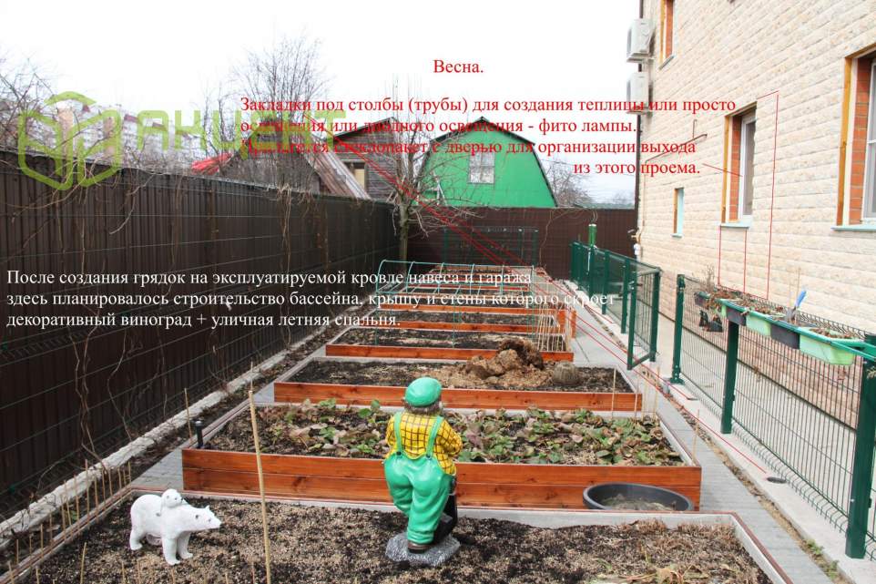 Эксплуатируемая кровля с грядками - решение затенённости огорода в городе.