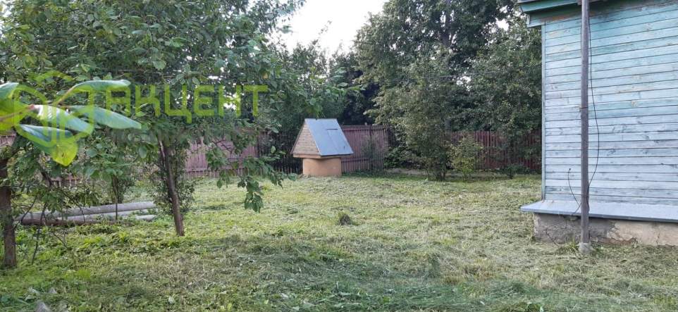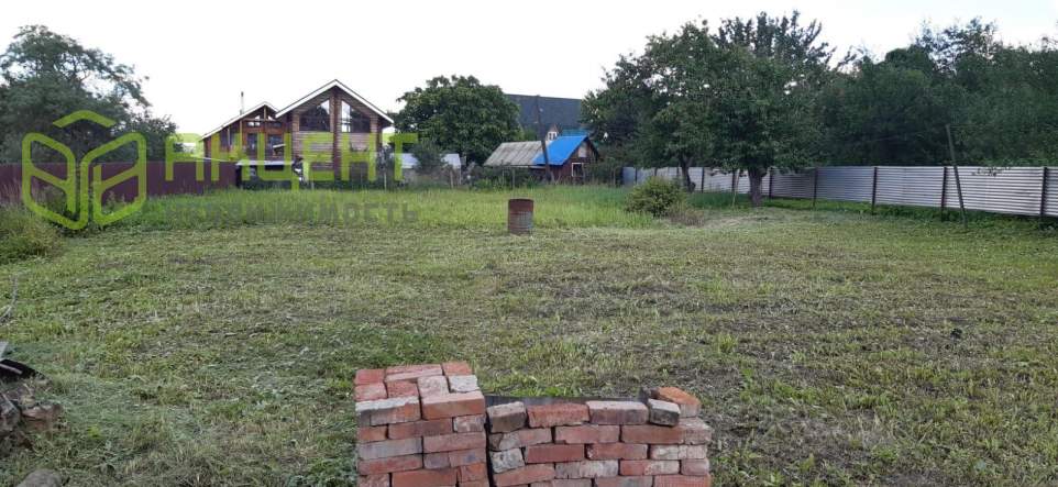 Ровный и ухоженный участок с плодовыми деревьями и кустарниками.