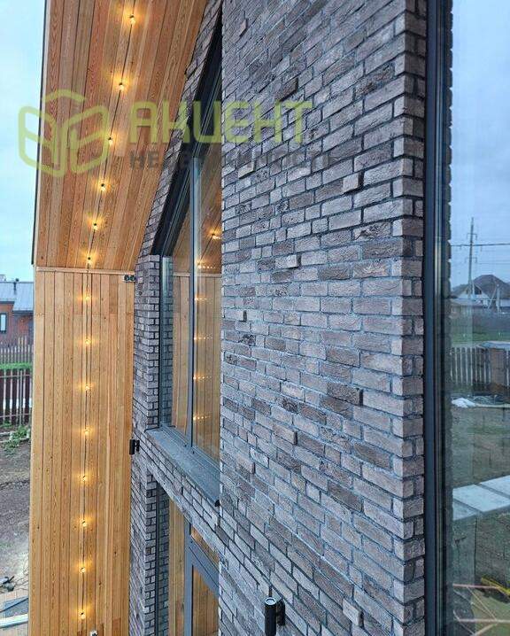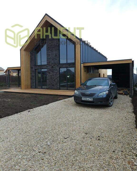????Центральный фасад из кирпича ручной формовки и лиственницы