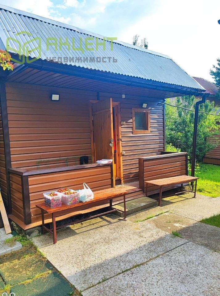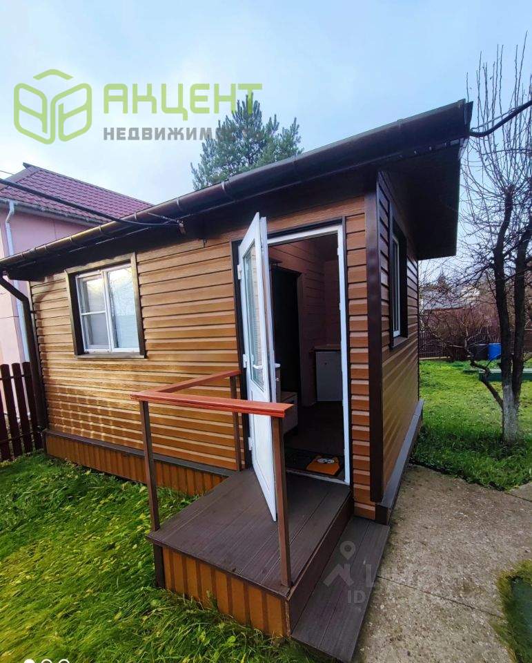 На участке на бетонированной площадке построен из бруса гостевой домик , дом полностью утеплён, обшит сайдингом, стеклопакеты , жалюзи, телевизор, новый холодильник.