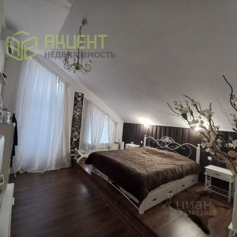 Дом полностью готов к круглогодичному проживанию, выполнен дизайнерский ремонт, меблирован, ухоженный, просторный и светлый. Продуманная функциональная планировка и неповторимые ощущения от 7-ми метровых потолков. На первом этаже расположены: тамбур, большой холл с встроенной гардеробной системой, санузел с душевой кабиной, котельная с входом в подвал, кладовка, жилая комната (14), кухня и гостиная с выходом на крытую террасу. На втором этаже 2 жилых комнаты (по 14) из каждой выход на балкон, спальня (19) с подиумом и выходом на балкон, санузел с ванной. На всех балконах распашные москитные двери. На кухне встроенная мебель Мария с бытовой техникой Воsсh. На втором этаже выполненная на заказ встроенная гардеробная система.