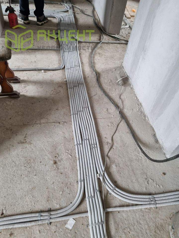 Потолок утепленый . В доме полностью продеведено электричество, стоит 2 щитка , один основной, второй слобо точный , на фото видно разводку электричества. Заложены трубы для двух кондиционеров.