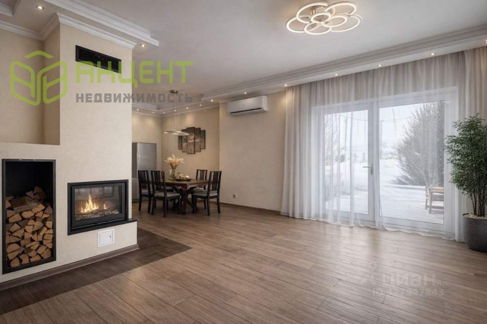 просторная кухня-гостиная с дровяным камином и выходом на террасу, кабинет (гостевая спальня), гардеробная, санузел, котельная, прихожая.