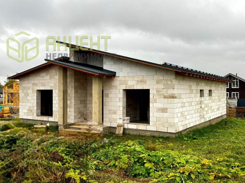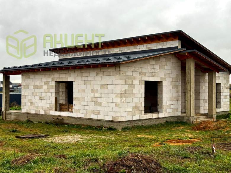 Продам дом на участке 7 стоток. Монолитный фундамент, теплый блок Д400, крыша утеплитель 20 см, профнастил СТ 15 серый матовый.