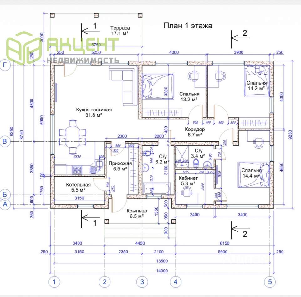 • Площадь дома: 132 м²