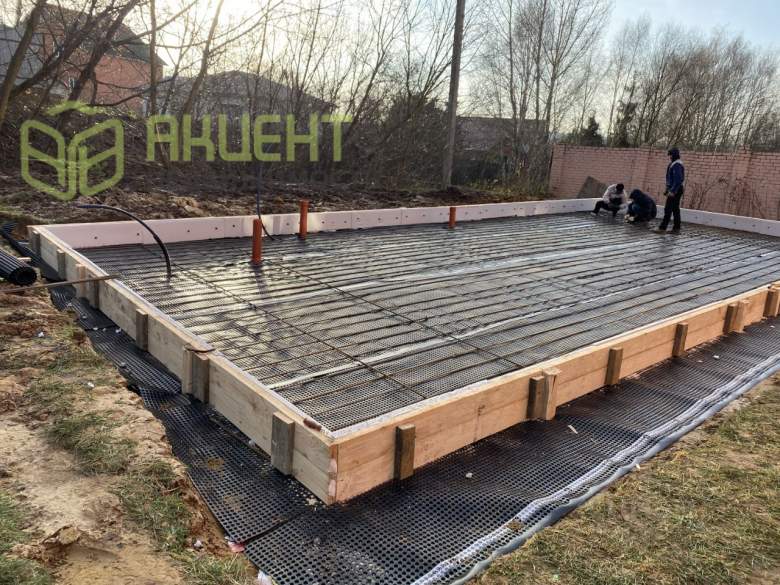 -общая площадь 110м2- монолитная фундаментная плита 30 см.