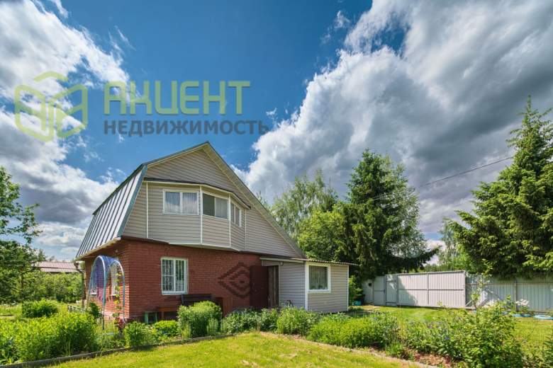 Дом 83,7 кв.м на двух участках общей площадью 16 соток. Дом кирпичный, второй этаж обтянут сайдингом, внутри обит вагонкой. Есть терраса и балкон.