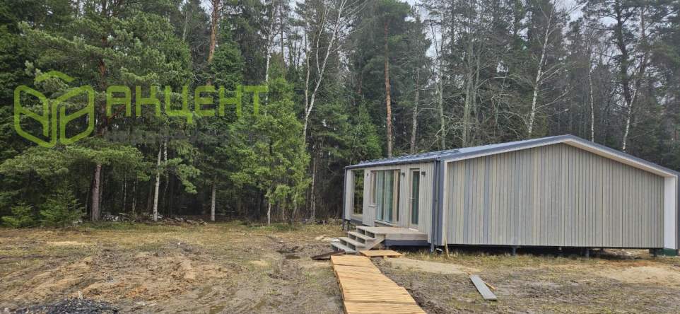 Продается новый модульно-каркасный дом , построенный в 2026 году. Одноэтажное здание с дизайнерским ремонтом, выполненным в светлых тонах, создает уютную атмосферу. Просторная терраса позволяет наслаждаться видами на лес. В доме две комнаты, современная кухня-гостиная с большими окнами, обеспечивающими естественное освещение. Ванная комната оборудована всем необходимым.