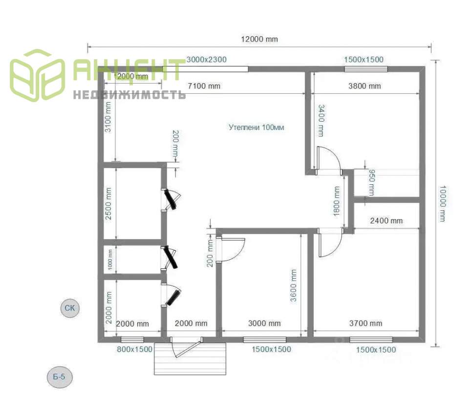 Пол: 200 мм с дополнительным утеплением