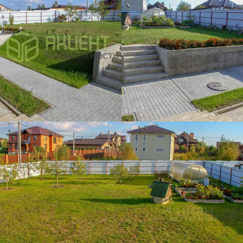 На участке посажены плодовые деревья и кустарники. Установлена теплица, хозблок. В доль забора посажены сосны. Информация взята из открытого источника и может отличаться от действительной.