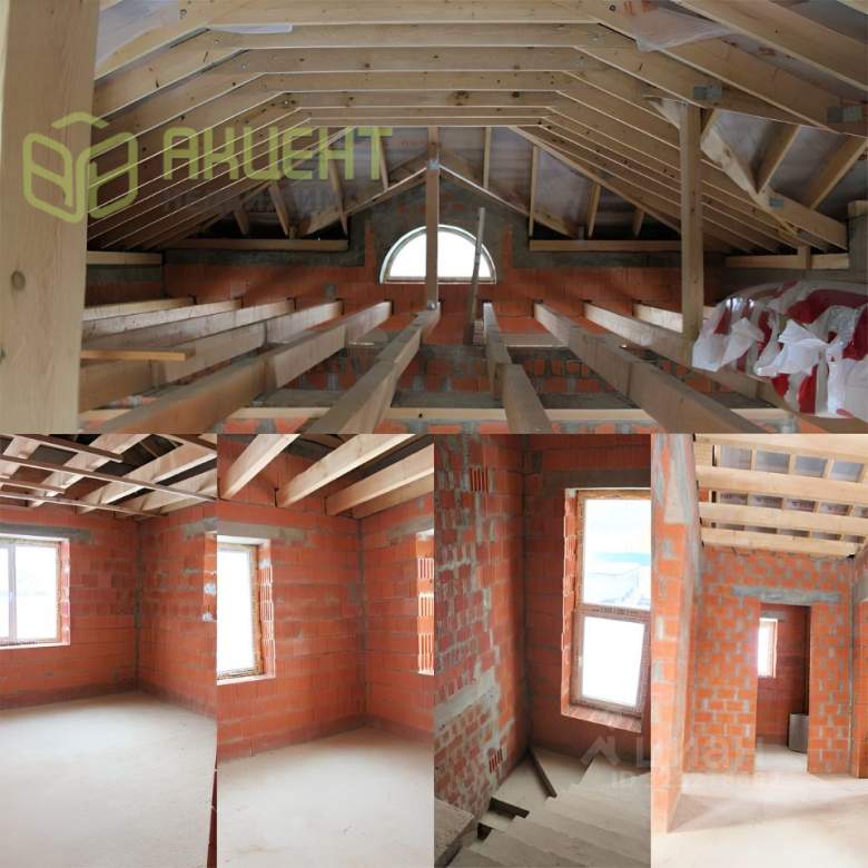 Пол 1 и 2 этажа, лестница монолитные. Чердачное перекрытие деревянные балки.