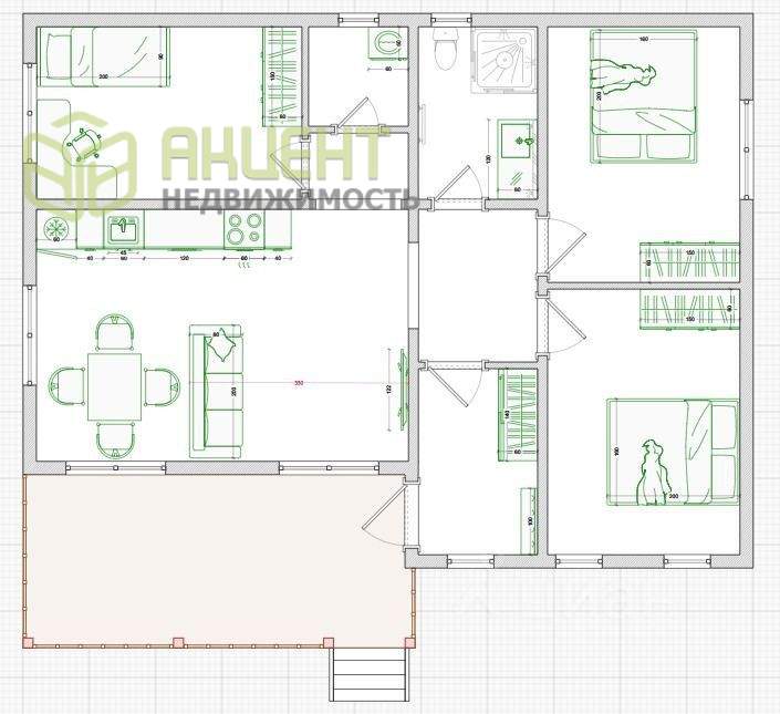 3 спальни по 12 м2 каждая, санузел 6 м2, кухня-гостинная 24 м2, котельная 4 м2. высота потолков 3 м. Фундамент ЖБ сваи. утепление 200 мм по кругу. Информация взята из открытого источника и может отличаться от действительной.