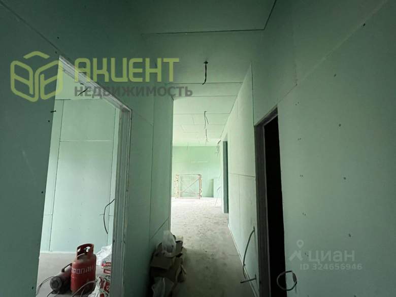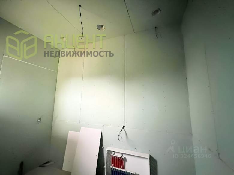 На стенах - гипсокартон под чистовую отделку, на полу - чистовая стяжка.