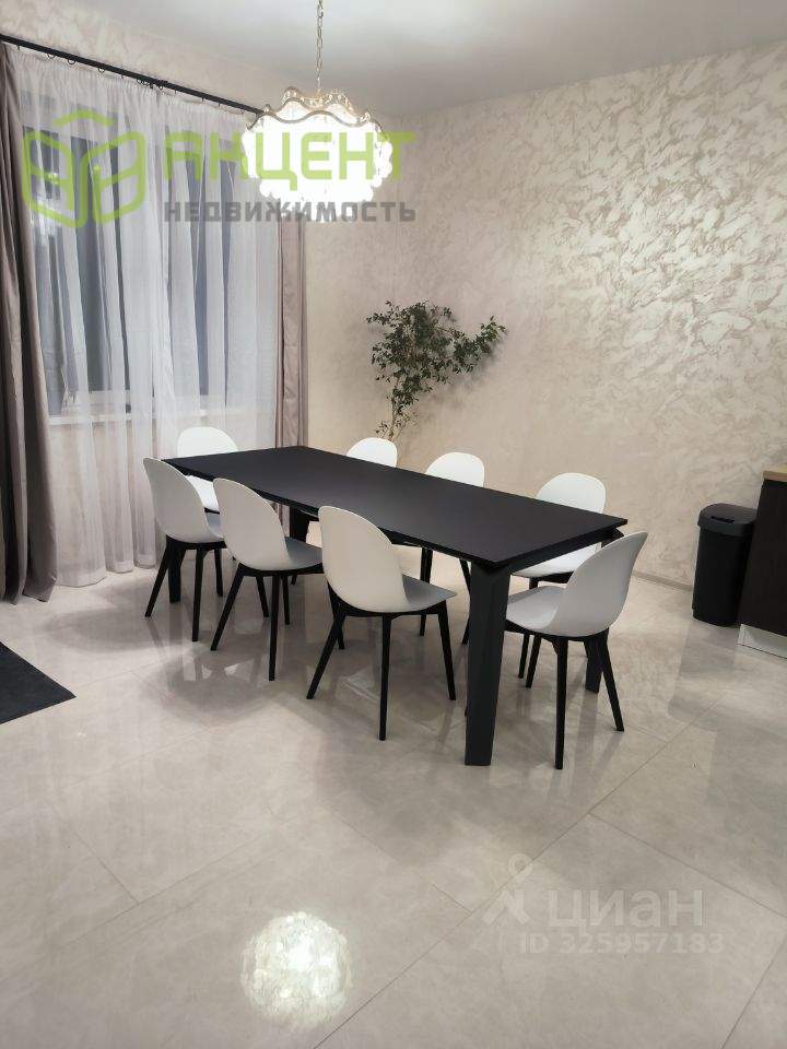 На первом этаже при входе в дом расположена гардеробная 3 м, санузел 5.5 м, спальня 14.3 м, просторная гостиная с окнами в пол, с мягким удобным диваном и смарт тв 65 дюймов, на кухне установлена итальянская кухня Stosa со встроенной бытовой техникой ( варочная панелью, духовкой, посудомойкой), стол и стулья итальянской фабрики Calligaris и посудой. Общая площадь кухни-гостиной 51.9 м.