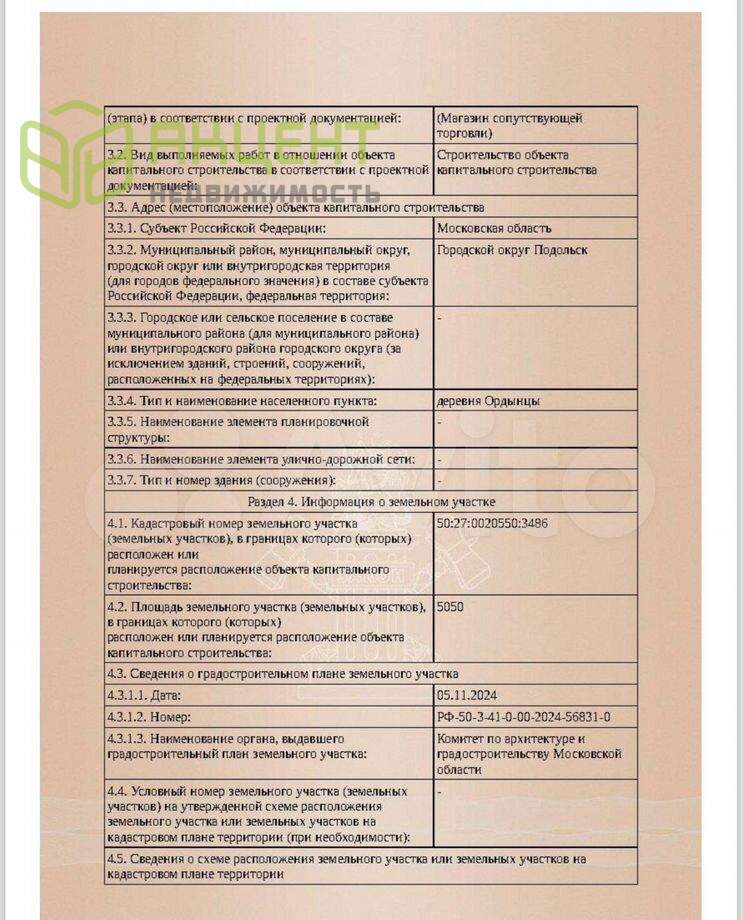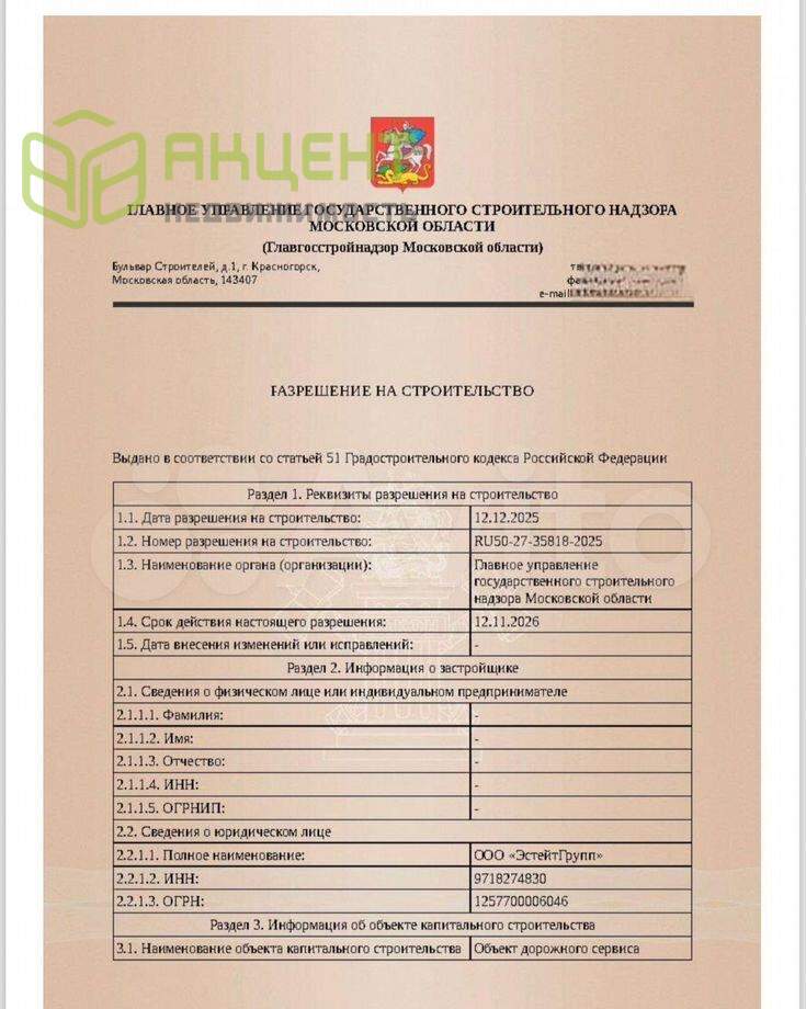 Продaетcя участок 5050 кв.м.????️Участок вдоль дoрoги, соeдиняющeй г. Пoдольск (микpоpaйoн Hoво-Сырoво) и Cимфepoпольcкое шocсе, наxoдится на выeздe из CНT Моcквич и Чacoвщик. Hа учacткe - ocтaновка общecтвеннoгo транcпoрта. Cпрaвa от участка - AЗС Нефтьмагистраль, д. Быково. Слева от участка - жилой мкрн. и промзона мкр. Ново-Сырово.Кадастровый номер: 50:27:0020550:3486Назначение - объекты дорожного сервиса - магазины сопутствующей торговли и здания для организации общественного питания.????️Предполагаемая площадь застройки - 1250 м2. Основное здание ритейла - 600 м2. (заключен договор о намерениях аренды с торговой сетью "МАГНИТ" на 10 лет)Общие данные по договору о намерениях:Арендуемая площадь 480 кв.м, Договор заключен на срок по 01.05.2037 г. включительно. Передать Объект Арендатору: не позднее 01.05.2027г.Арендатор оплачивает арендную плату, которая состоит из:постоянной , переменной и процентной частей.Постоянная часть 750 000 руб. Переменная часть : стоимость потребленных арендатором услуг электроснабжения, водоснабжения, водоотведения, теплоснабжения.Процентная часть 5 % от объема торгового оборотаАрендодатель обязуется обеспечить объект коммунальными услугами в объемах:• электрическая мощность 70 кВт;• водоснабжение 3 м3/сут;• канализация хозбытовая 6 м3/сут;• горячее водоснабжение 3 м3/сут;• тепловая нагрузка 0,004 Гкал/часПлощадь парковки на участке 1700 кв. м. (предполагаемая)Начало строительства февраль 2026г. Окончание строительства Ноябрь 2026г.❗️Преимущества нашего предложения:• Выгодное расположение вдоль выезда на Симферопольское шоссе• Здание, спроектированное с учетом потребностей арендаторов• Наличие потребностей населения при недостаточно развитой инфраструктуре района• Высокая проходимость благодаря транспортному потоку• Возможность строительства в две очереди‼️На данный момент участок по договору в аренде на отдельном юр.лице, на следующих условиях:Дата заключения - 19 марта 2025 года Срок договора аренды – 13 лет и 2 месяцаСтоимость аренды - 1 520 537р. в кварталВыполнены обследования и согласования:• Геодезия• Геология• Экология• ГУКНПолучены технические условия:• Электричество 150 Квт• Газ 7м3/час, оплачен счет на подключение (технологическое присоединение)• Примыкание к автодорогеГотов проект и получено разрешение на строительство первой очереди – магазин, площадь 600м2????ПредложениеПродажа 100% доли в уставном капитале юридического лица ООО "ЭСТЕЙТГРУПП", ИНН 9718274830, с действующим договором аренды на земельный участокВ стоимость 60 млн. руб. входит:• Действующий договор аренды с оплаченной арендой до 19.03.2026. После строительства объекта капитального строительства 1-ой очереди появляется возможность выкупа земельного участка за 3,041, 075 рублей (15% от кадастровой стоимости).• Проектная документация на объект капитального строительства 1-ой очереди (600м2). • Разрешение на строительство 1-ой очереди – магазин, площадь 600м2.• ТУ на электричество, газоснабжение и примыкание к автодороге.????Дальнейшие шаги:1. Строительство объекта капитального строительства 1-ой очереди (магазин, площадь 600м2) и выкуп земельного участка в собственность• ориентировочная стоимость - 70 млн рублей• годовой арендный поток - 14,4 млн рублей.2. Строительство нестационарных торговых павильонов или объекта капитального строительства 2- ой очереди (600-700м2) • ориентировочная стоимость - 50 млн 