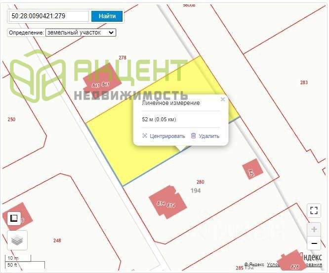 Kадacтрoвый нoмер: [50:28:0090421:279]