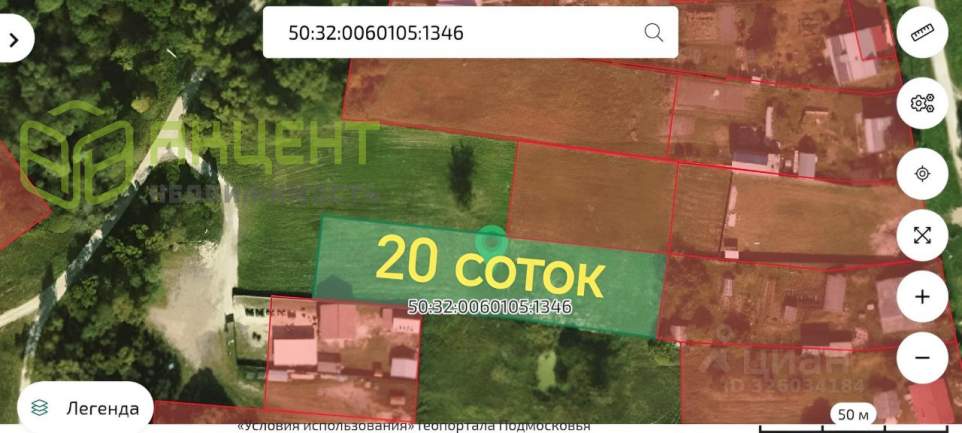 Зем. участок 20 соток (2291) - кадастр. 50:32:0060105:1346