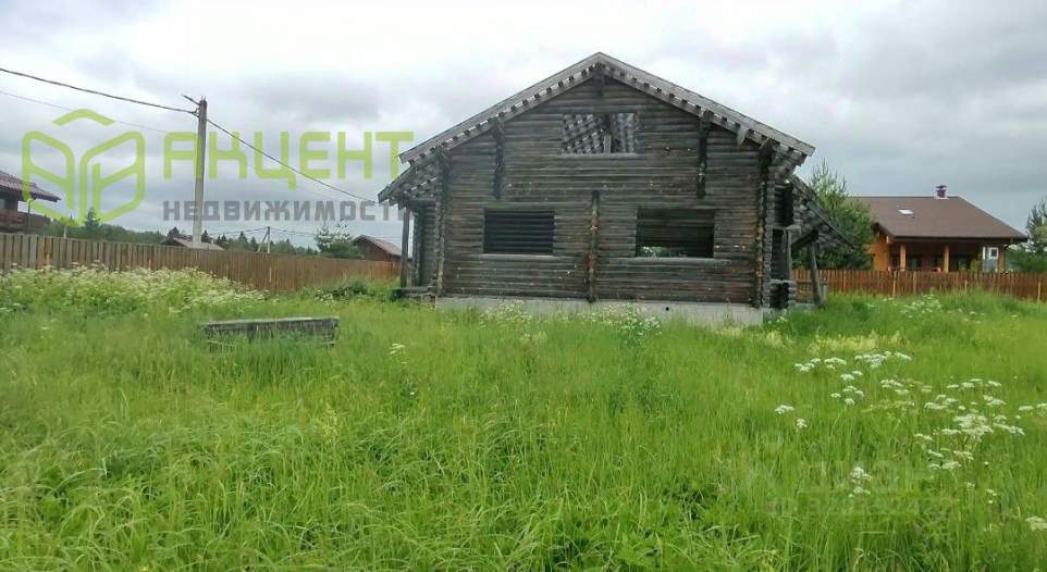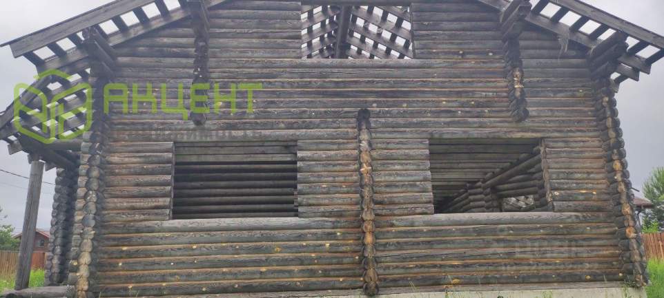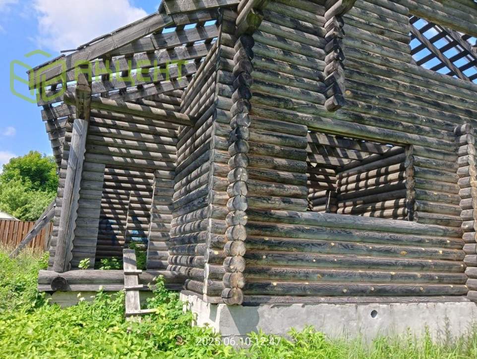 На участке расположен недостроенный дом (зарегистрирован) из оцилиндрованного бревна диаметром 22 см, фундамент ленточный (добротный, в отличном состоянии).